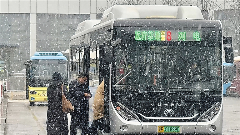 公交公司根据雪情和客流动态及时调整增加运营班次。 刘雲龙 摄