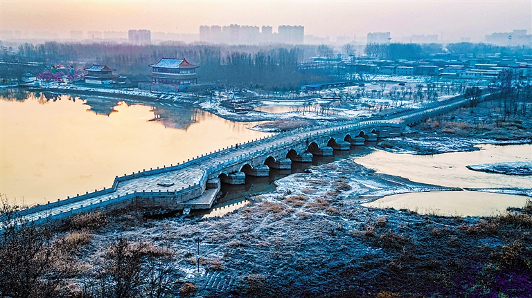 四季在它的拱券间流转出不同的诗篇——春水初涨时,连拱如镜,倒映天光;夏荫浓密处,宽阔桥面犹传历史回响;秋阳为敦厚墩台镀上暖色;冬雪在石栏上勾勒出苍劲的筋骨。作为全国重点文物保护单位和国家4A级旅游景区,今日的永济桥既承载着“长虹卧波”的诗意想象,也迎接着当代探寻的目光。