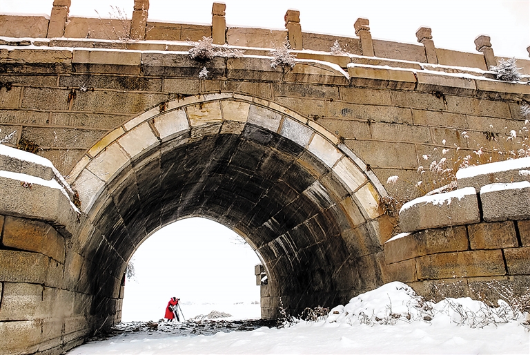 | 沧桑古桥与素雪相映。 |