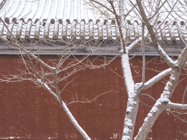 | 飞雪映朱墙。罗大庆摄 |