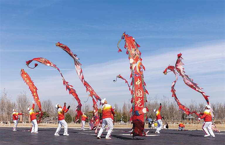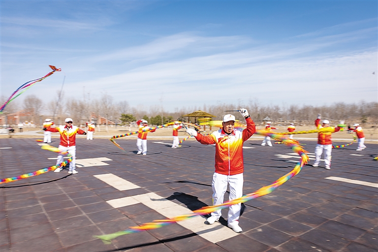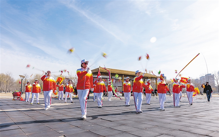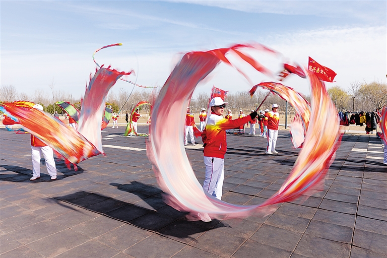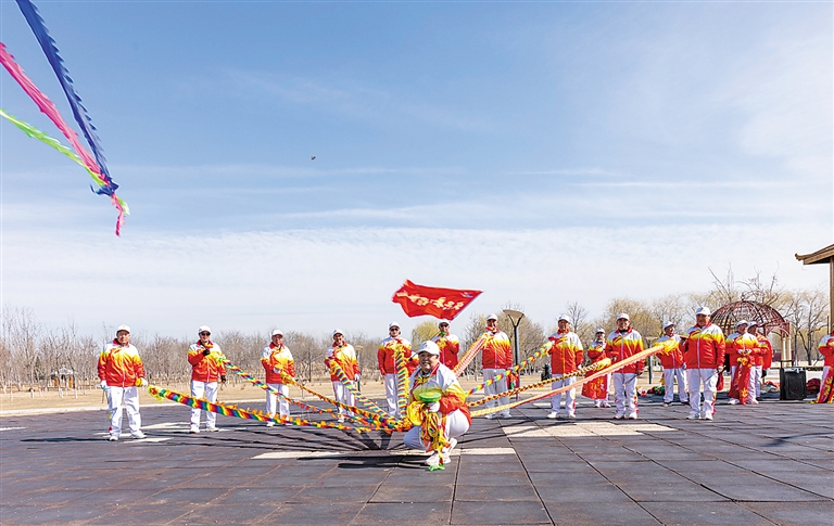 定兴县空竹协会日前举办民俗健身展演活动,以传统空竹表演喜迎春日,传递吉祥祝福。