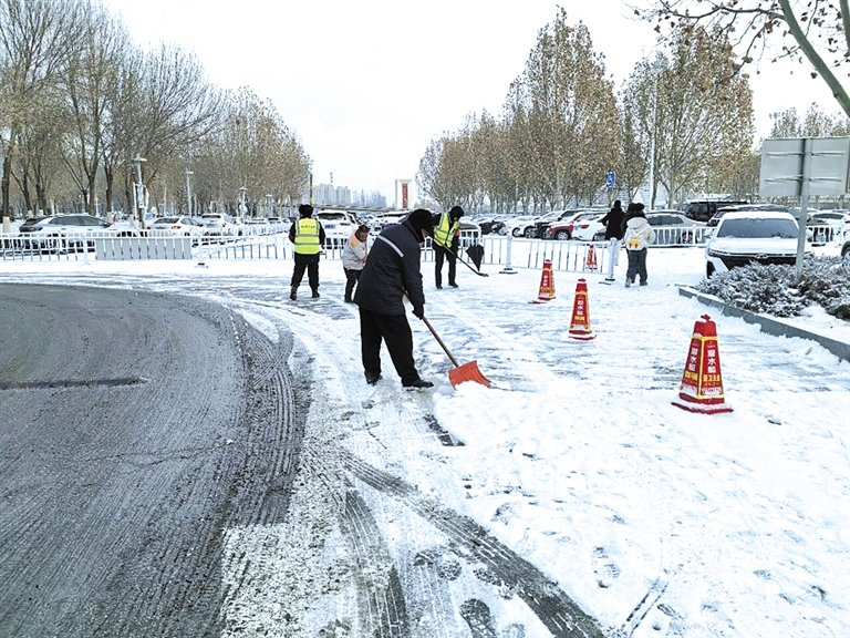 本报讯(新畿辅-保定晚报记者丁梦圆通讯员胡静)1月17日,保定市迎来降雪天气,保定国控集团易泊智慧停车公司迅速启动雨雪天气应急保障预案,落实“雪落地、人到岗,雪不停、清不止”要求,组织人员奔赴市区医院、交通枢纽等重点区域停车场,开展清雪除冰作业,全力保障市民安全出行。