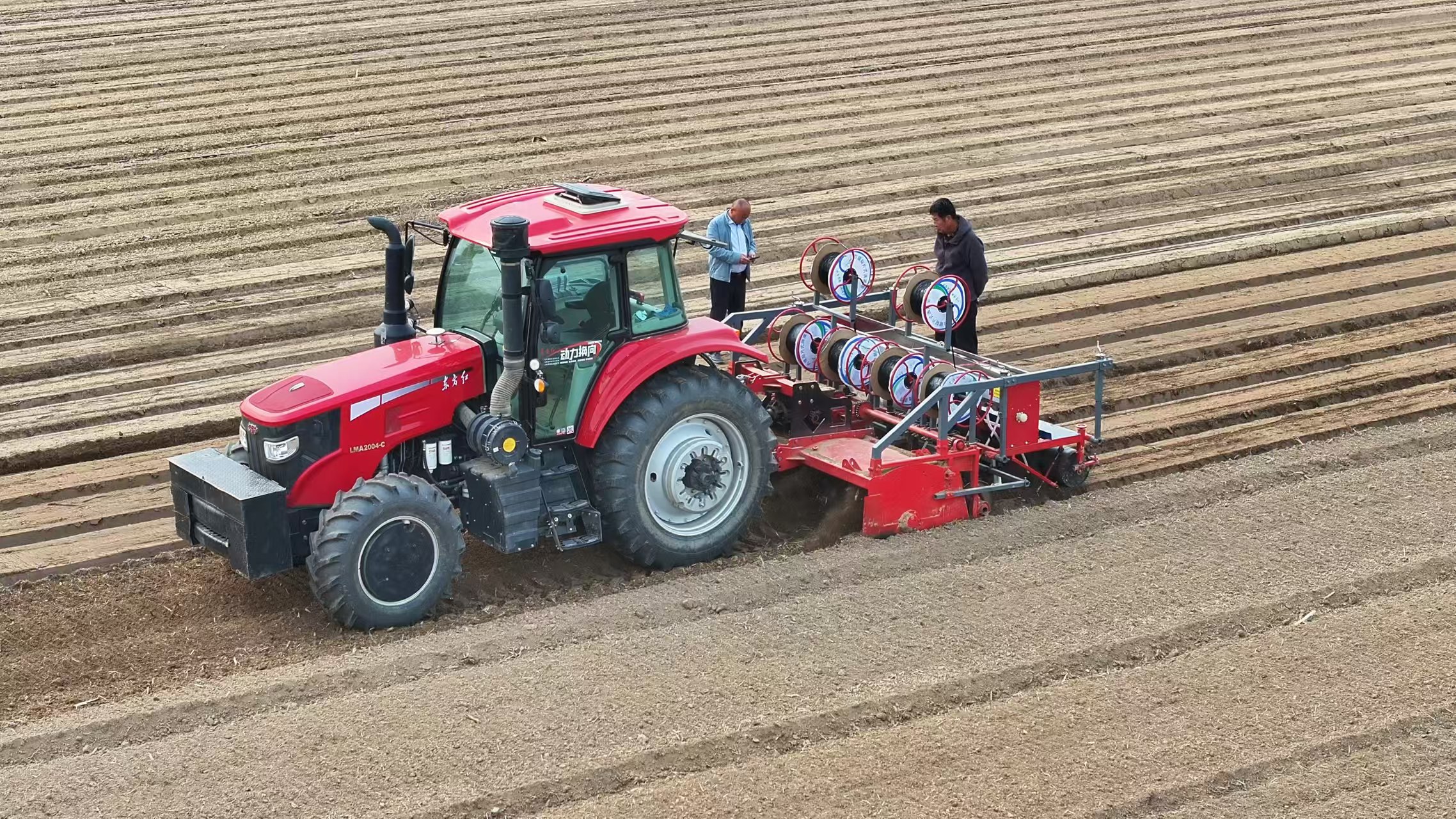 | 无人驾驶多功能中药材播种机进行播种作业。李萌摄 |