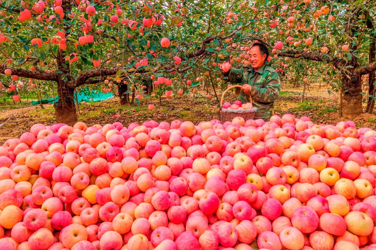 岗底村村民在果园里采摘苹果。图片来源:我看邢