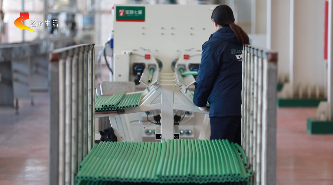 宝路七星管业有限公司总工程师高武奇:前面的工箱就是我们的二次固化,因为PPR这种材料,根据这种材料的特性,真正的脆性就跟玻璃似得,一碰就碎了,炸了,需要二次固化这道工序,105℃,4个小时,对管材内部的分子链的舒展,达到二次结晶,降低它的低温环境脆性,特别是在北方寒冷地区,特别明显,那可能5℃时候,这个PPR就不能施工了,我们通过二次固化,它也不会脆。