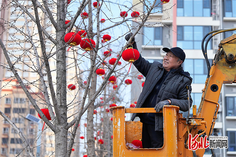 2月2日,正定县塔元庄村,村民正在悬挂红灯笼,节日氛围越来越浓。河北日报记者王伟摄