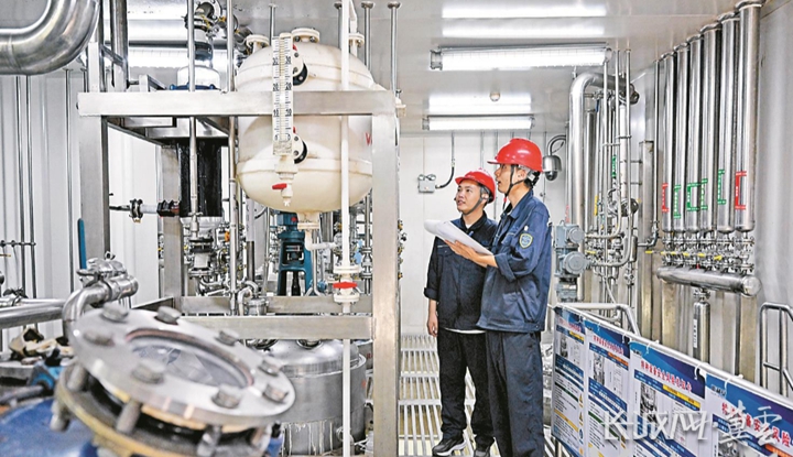 京津冀·沧州生物医药产业园,华润双鹤药业股份有限公司沧州分公司员工记录生产数据。张昊摄