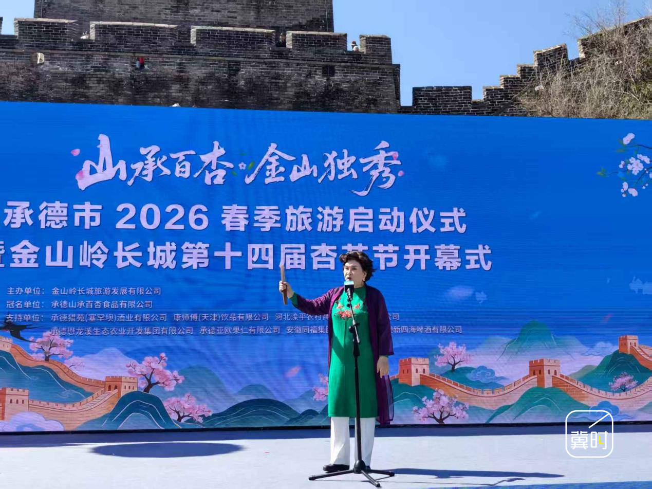 4月4日上午10点,承德滦平金山岭长城砖垛口广场,千株野生杏树正值盛花期,粉白的花枝从古老垛口探出身来,和巍峨长城构成一幅刚柔并济的水墨长卷。承德市2026春季旅游启动仪式暨金山岭长城第十四届杏花节在此启幕。评书泰斗刘兰芳的醒木一敲,军旅歌唱家乔军的歌声一亮,现场上千名游客的掌声和杏花一同“绽放”。