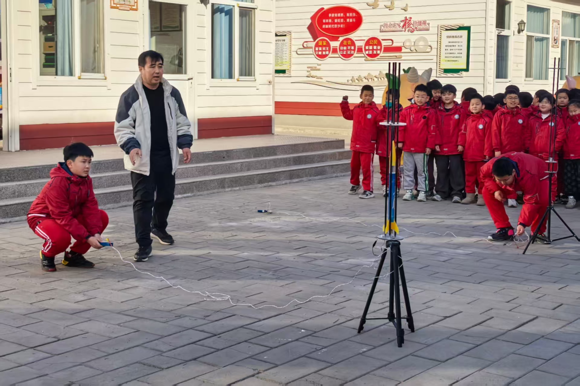 本报讯(新畿辅-保定日报记者程雅洁通讯员郭庆伟)“5、4、3、2、1,发射!”1月12日,在定兴县实验小学,随着教师的指令,航模队员迅速按下伞降载荷火箭点火开关,火箭直冲云霄。