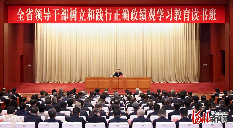倪岳峰指出,党的十八大以来,习近平总书记围绕树立和践行正确政绩观发表一系列重要论述,深刻阐明政绩为谁而树、树什么样的政绩、靠什么树政绩等一系列重大问题,为各级党组织和党员干部立党为公、为民造福、科学决策、真抓实干提供了重要遵循。要深入学习贯彻习近平总书记重要论述,深入学习贯彻习近平总书记视察雄安新区重要讲话精神,深入学习贯彻习近平总书记对河北工作的重要指示精神,坚持为人民出政绩、以实干出政绩,推动党中央决策部署一贯到底、落地见效,奋力谱写中国式现代化建设河北篇章。