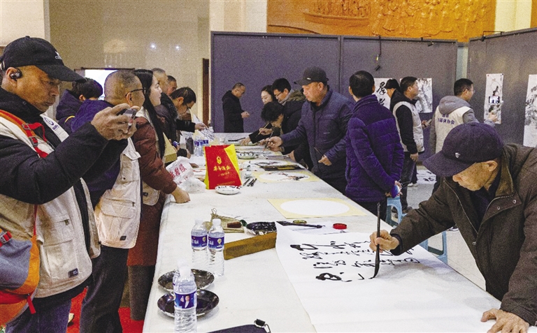 | 活动现场,书画爱好者们挥毫泼墨。 张立强 摄 |