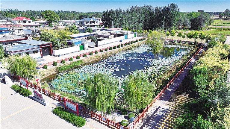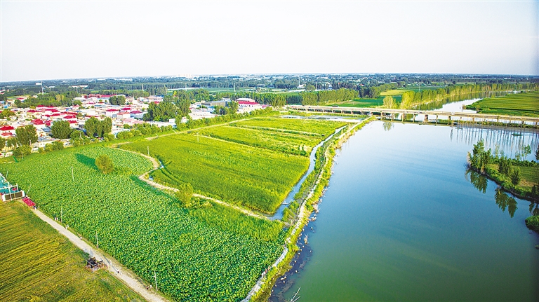 俯瞰高阳县东留果庄荷塘。