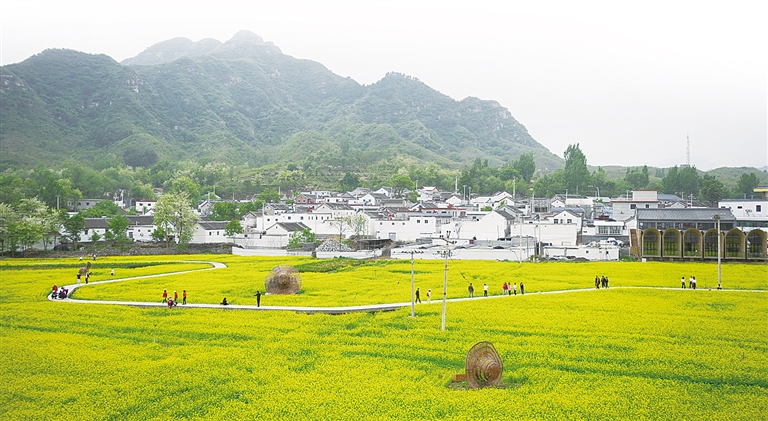 游客在易县田岗村花海中漫步。 郭恩桥 摄