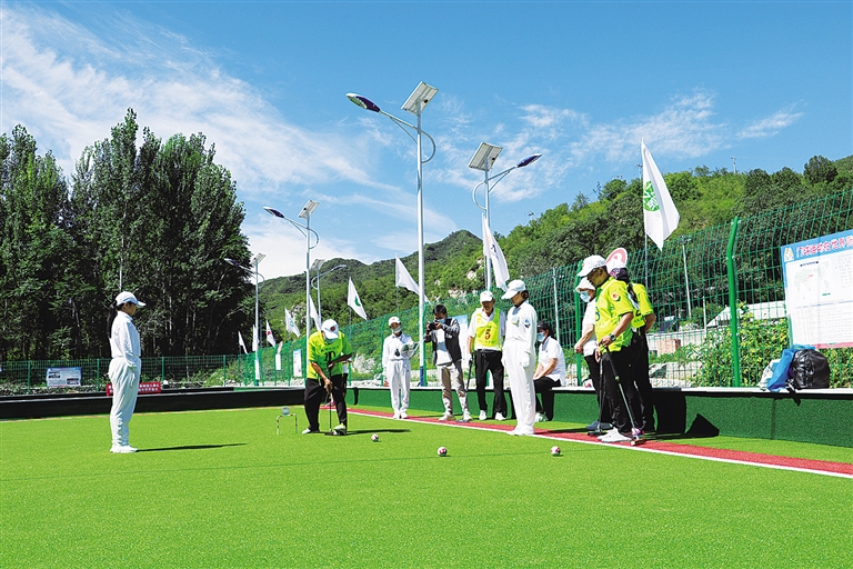 外地游客在易县牛岗乡台底村体验门球运动,放松心情。 郭恩桥 摄