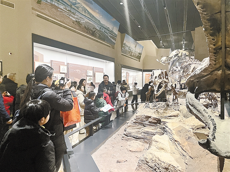 冬日暖阳下,中国古动物馆(保定自然博物馆)的恐龙帝国展厅里,北京市奋斗小学五年级男孩胡翔羽仰着头,眼睛睁得圆圆的。“在动画片里看的恐龙小小的,这里的恐龙那么大,好震撼。”他的惊叹,道出了许多初次踏足这里的孩子的心声。